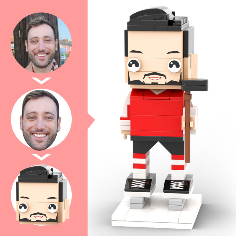 Personalisierte Kopf Ziegel Figur Geschenke Für Fans Und Spieler Hockeyspieler In Roter Kleidung Mit Spielernamen Berufsgeschenk