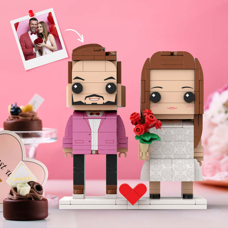 Valentinstag-paar-geschenk Für Verliebte, Anpassbar, Ganzkörper-ziegelfiguren Für 2 Personen, Personalisierte Ziegelfiguren Mit Niedlichem Gesicht